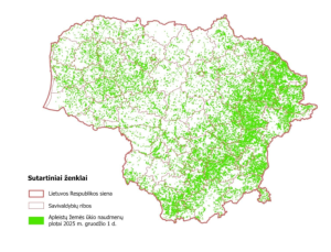 1 pav. Apleistų žemės ūkio naudmenų plotų pasiskirstymas Lietuvos Respublikos teritorijoje 2025 m. gruodžio 1 d.