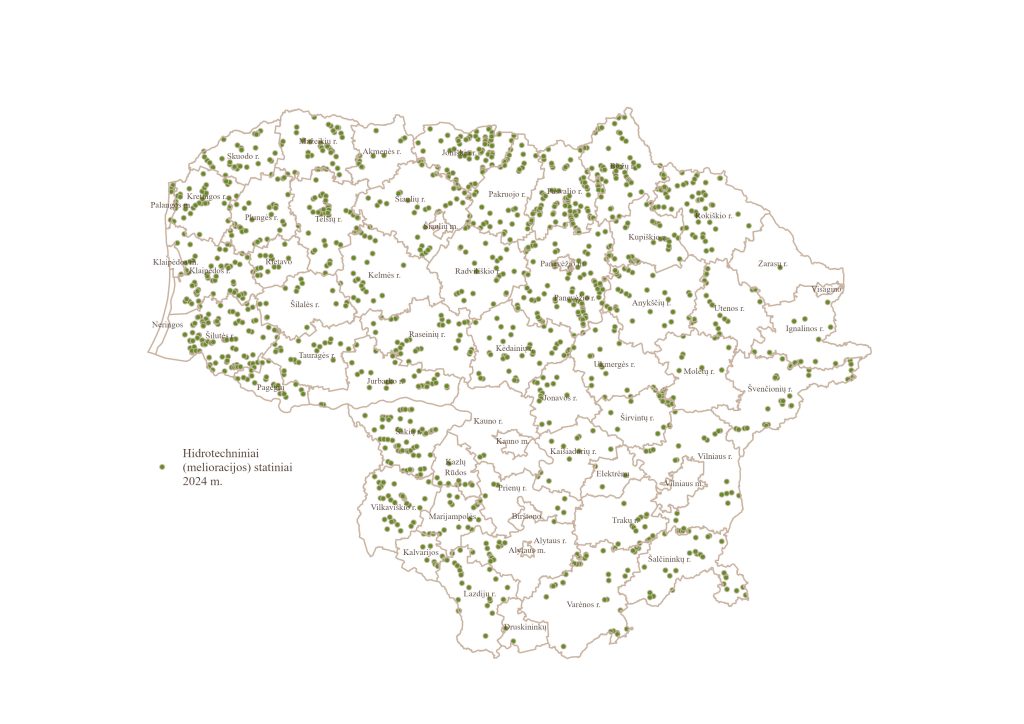 9 pav. Hidrotechniniai (melioracijos) statiniai Lietuvos Respublikos savivaldybėse 2024 m.